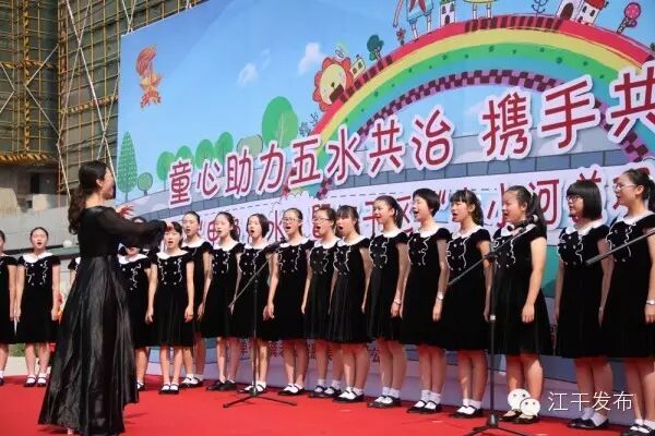 活动在天杭教育集团少先队员激昂的《大禹纪念歌》合唱歌声中拉开帷幕。队员们以情景剧的形式与现场观众分享了“小小河道观察员在行动”活动收获和体悟,并发出争当“五水共治”小宣传员、小记录员、小示范员、小研究员、小监督员的倡议!