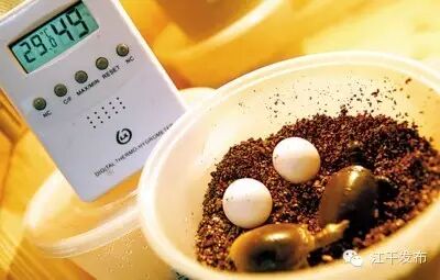 ②湿度:最好控制在80%~82%,砂子含水量最好控制在7%~8%,不得低于5.3%,不得高于25.0%。孵化期间,应每天定期检查沙子的湿度.检查时,可用手轻轻扒开沙子, 观察含水沙层离表面的深度.如果直到靠近蛋才出现湿润沙层,则用喷雾器在沙子表面喷水,使细沙层(5~6厘米 厚)略带湿润即可,切不可在高温下大量洒水.一般2~3天洒水1次。