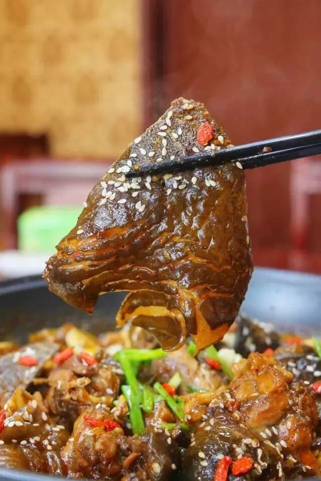 甲鱼的四肢很健硕,所以腿部看起来真的既肥大又饱满,肉质非常的鲜嫩入味,且软烂程度刚刚好~甲鱼的肉富含蛋白质,且脂肪含量超级低!不用担心吃多了会长胖哦~