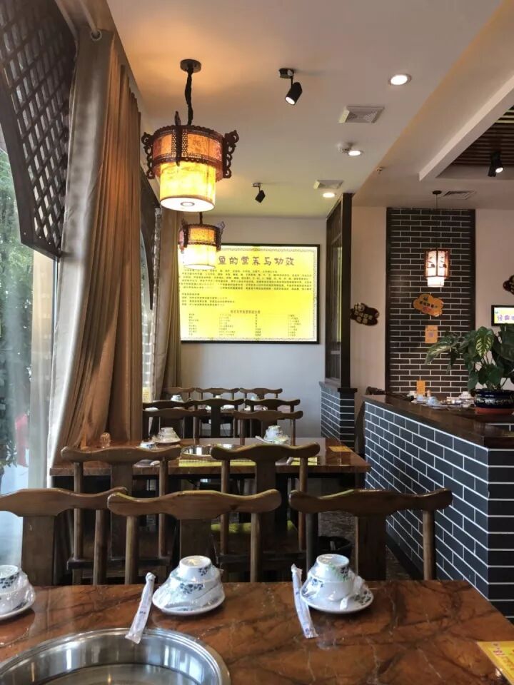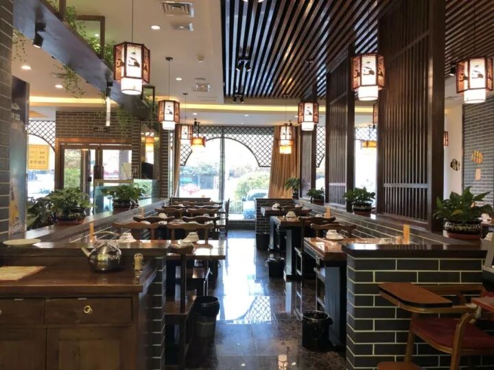 偏中式的装修风格,店内散台宽敞、舒适、干净,实木的桌椅,看起来朴素大方。