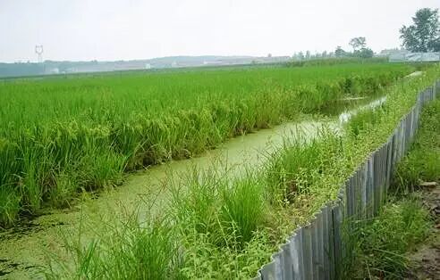 在绿油油的稻田旁四周已竖起了大约高40厘米的围挡,是为了防止甲鱼“逃跑”。