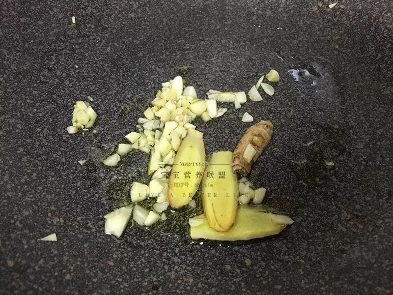 大火预热锅底放入橄榄油,放入姜片、蒜末爆香