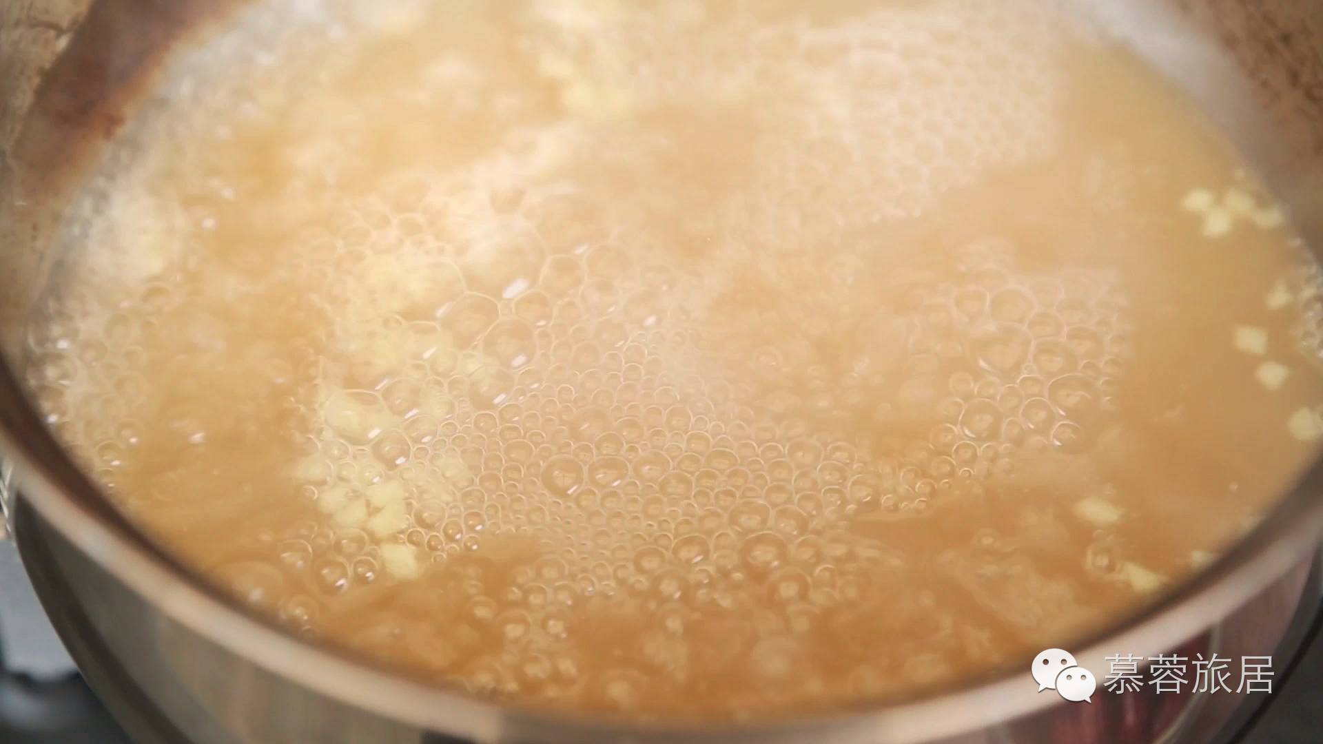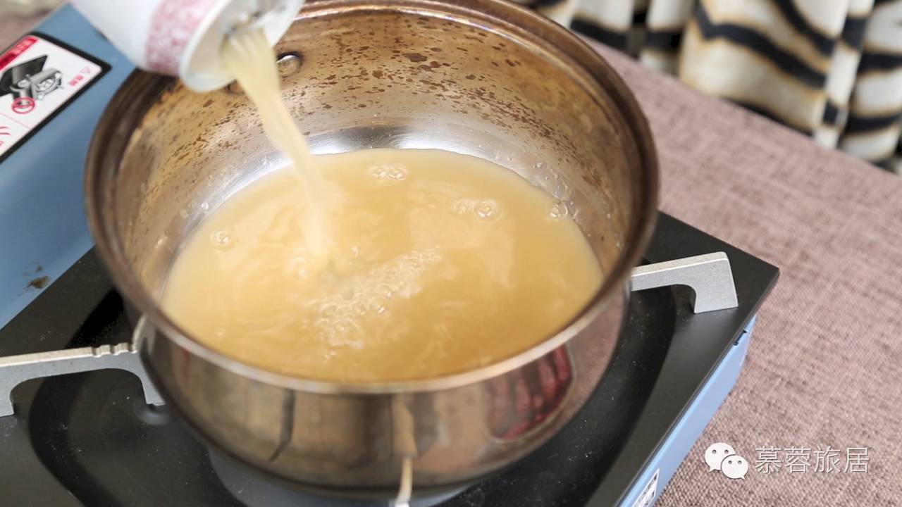 1、 把一罐甜酒汁、姜末倒入小锅,中小火煮开;![]()