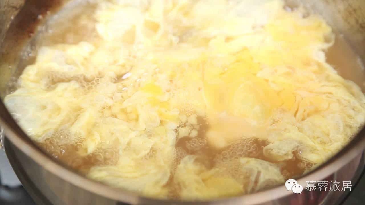 3、 把搅拌好的鸡蛋倒入锅里煮沸即可关火。