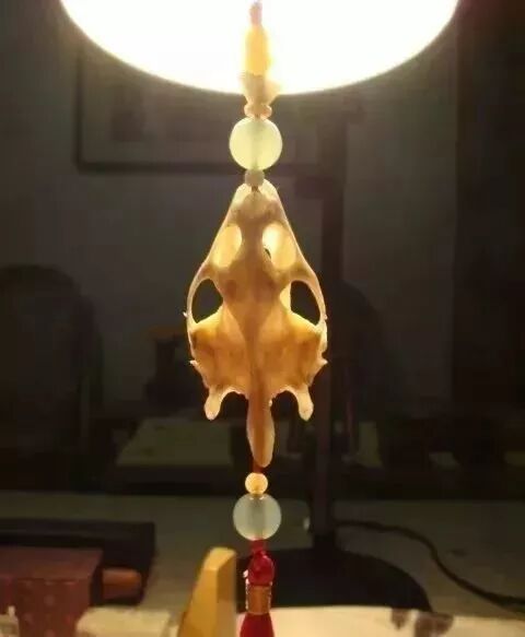 古代中国人认为,长寿的动物有灵气,是神圣的动物。所以乌龟和甲鱼直至都被看做避邪的东西。头部集中了整个动物的精华,我们民间就有用甲鱼头骨和乌龟头骨当挂饰来避邪。