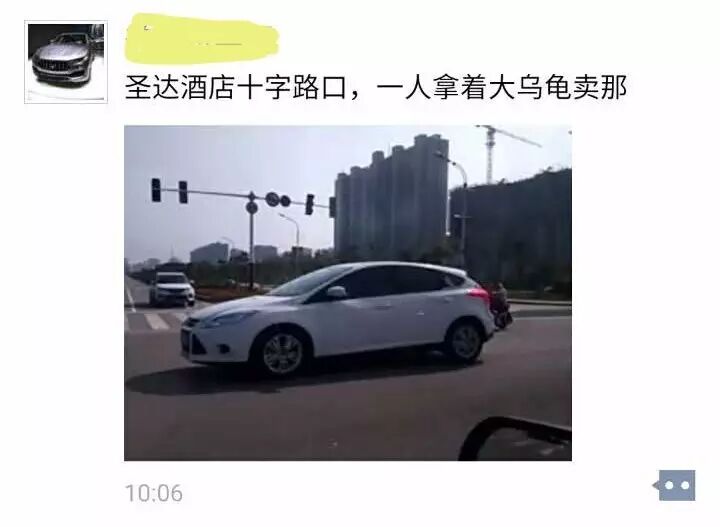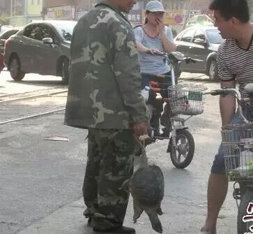 有网友爆料,碰到过这样的事:早上上班经过郓城圣达酒店路口,路边一个民工打扮的人手里举着一只大乌龟在向过往的车辆招手。