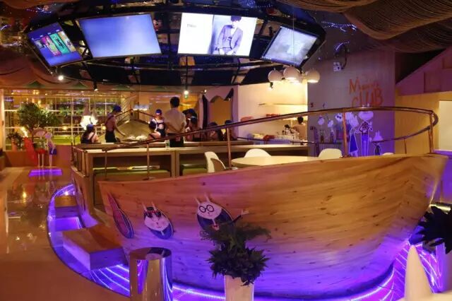 进入餐厅就能看到覆盖于墙面的“海底世界”清晰的珊瑚和深海鱼,立刻带您走进海底的梦幻世界。店内的装修风格是一个仿真船舱,全部采用环保木质材料,吧台是由透明的玻璃酒瓶叠加摆放而成,透过不同的颜色灯光,给人一种时尚的视觉感受。餐厅将船舱中的舵叶和舵杆作为装饰,贯穿于整个餐厅,搭配上高雅的酒吧爵士乐,让您的身心得到放松。