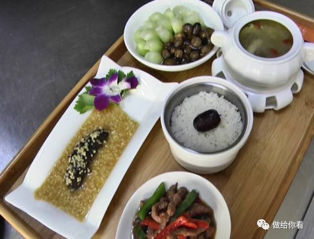 月子中心的营养师告诉我们,因为产妇哺乳消耗的营养比较多,他们这里每天会有三次正餐,三次点心,并根据每个人的差异,吃的东西也会不同,同时根据食补的理念,在饮食中添加了燕窝、虫草、雪蛤等滋补品及各种中药材,帮助产妇更快恢复。