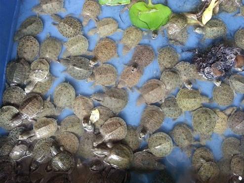 鳖苗来源,一是工厂化育苗和专业户批量生产的,二是市场上大小不等的野生鳖。不管哪种鳖苗进池时一定要分级暂养15天左右,待适应环境后再投入养殖池。放养密度根据池塘和其他因素而定,亩投2~3龄幼鳖100~150kg,最多不得超过200kg。