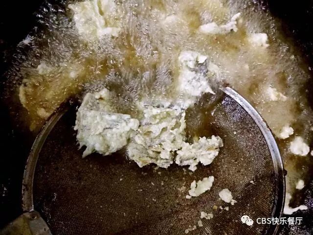 3.锅中的油烧热后放入刀鱼炸至金黄色,炸至两次即可