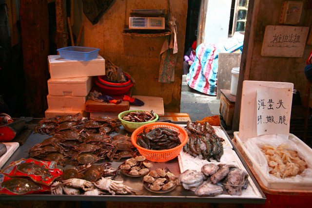 市场内有大小商户2000余家,300多种海产品一应俱全,空气中弥散着水产市场特有的海鲜味儿。这里交易的大部分海产品产自福州近海海域,还有一些来自加拿大、澳大利亚、日本、印尼、菲律宾、台湾等地,进口海鲜抵达福州后经过分拣、销售,再运往山东、天津、福建其他地区以及部分国外市场。