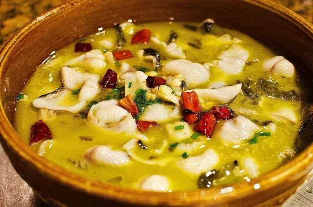 1.鱼头鱼骨剁块,鱼身上的肉片则斜切成鱼片,分别加入盐,料酒,淀粉和少许蛋清抓匀腌制10分钟左右。