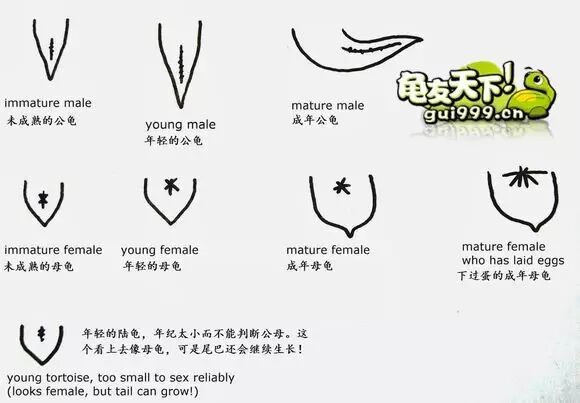 (3)从腹甲分辨,需要到一定程度大小才能看得出来。 公龟的腹甲明显凹陷(这点幼龟较难判断),母龟则是平的,个别也会凹陷。
