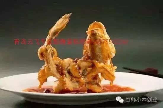 3、另起锅放底油,炒香蟹肉,放入姜末、牛奶、蛋清,加3克盐调味,勾芡,盛入色拉壶,撒上火腿末成自制蟹汁,跟桂鱼一起上桌。上桌后由服务员把蟹汁浇在鱼身上即可。