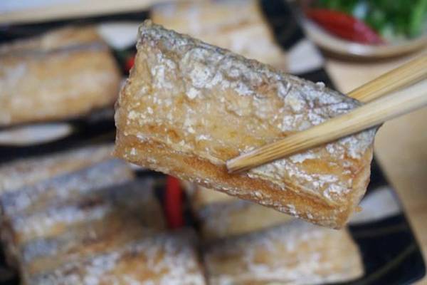 【控好油温】控制好油温,油烧到6成油,从大火转中火炸带鱼。看油温好没好,您将一点葱叶扔进油锅,葱叶周围迅速出现细密小气泡就是可以了。