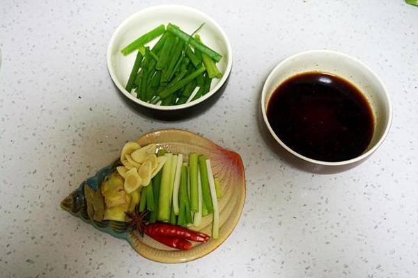 红烧调味料:葱段、姜片、蒜片、生抽、老抽、料酒、香醋、糖、盐、辣椒、胡椒粉