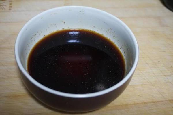 6、用清水、生抽、老抽、料酒、少量香醋、白糖和胡椒粉做一碗调味汁,这样做的好处是咸淡酸甜您现在就可以做调整。
