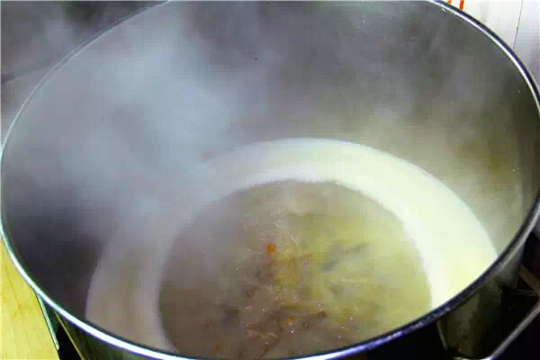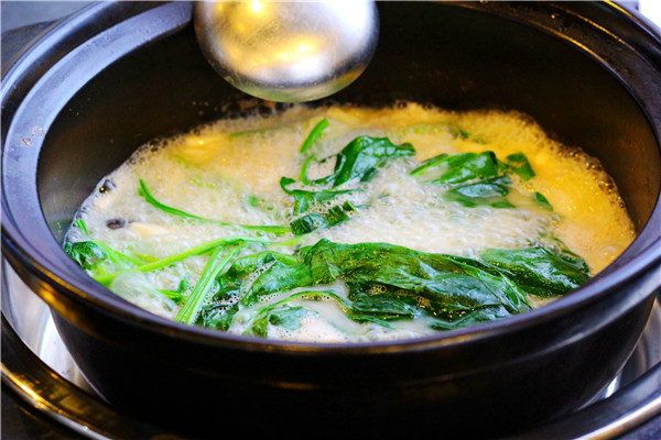 鱼骨和鱼肉是熬制石斑鱼火锅汤底的最佳选择。此时,距离点点火熬制已经有一段时间。火候变得尤其重要,火势过大,烧水虽急,却很难有效的将石斑鱼的营养熬出来;火势过小,力道不足,水的热量沁入不到石斑鱼的体内,里面的营养成分同样也出不来。如何保持一种不温不火的恰到好处,是考验一位石斑鱼火锅厨师合格与否的关键。