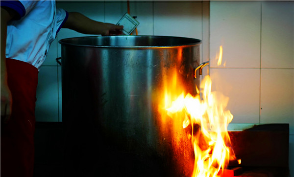 而对于厨师阿杰来说,他在蓝色渔火一天的开始则是从点燃那焰炉火开始。熊熊的火苗炙烤着铁锅发出滋滋的声音,里面的汤水开始弥漫出白色的蒸汽。