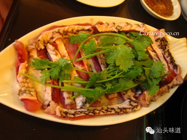 在汕头,火锅和鱼粥是石斑鱼最常见的吃法。小时候吃石斑鱼肉煮粿条汤,好吃得连汤都喝光。石斑鱼大排档在中山、长平、龙眼北等食肆随处可见鱼通常被“大卸八块”分成不同部位:鱼头、鱼皮、鱼腩、鱼下巴、鱼鳍、鱼肚等,食客现点现称。图为龙眼北路百合小学斜对面龙北细弟石斑火锅(Caviare伍丽)