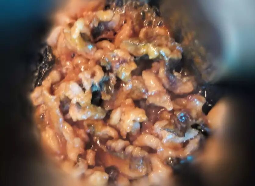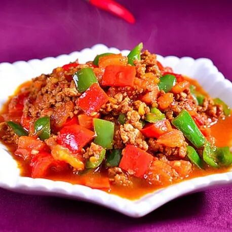 4、大青椒和大红椒剁成丁,猪肉剁成肉末后,加点酒和水淀粉抓匀。
