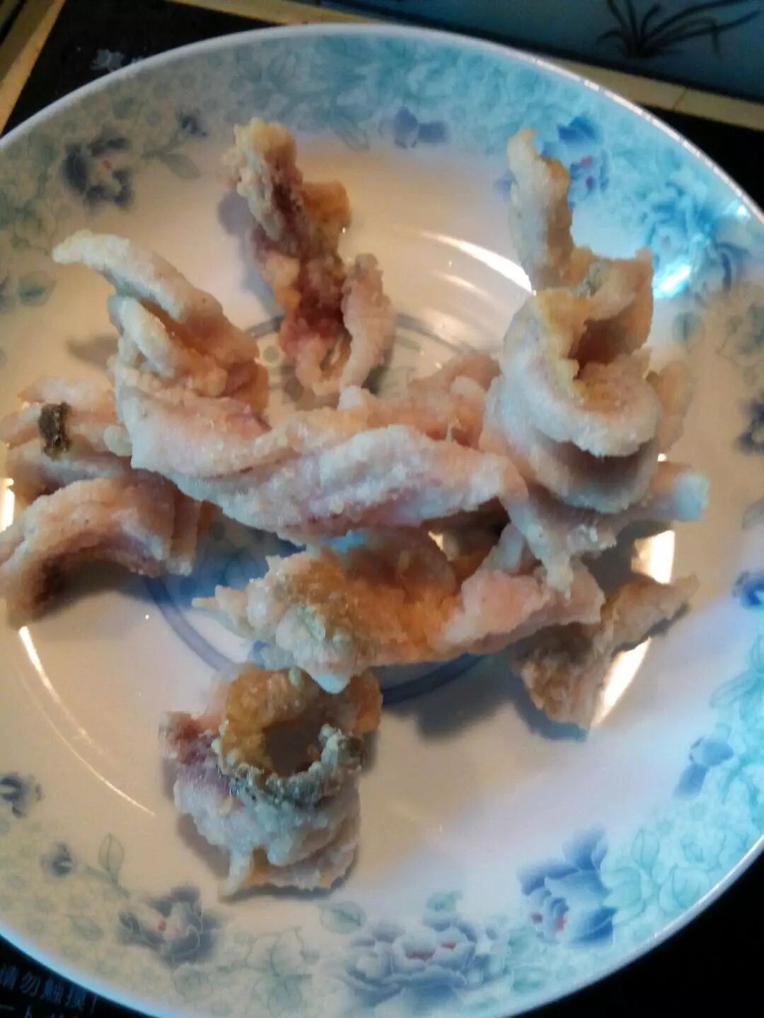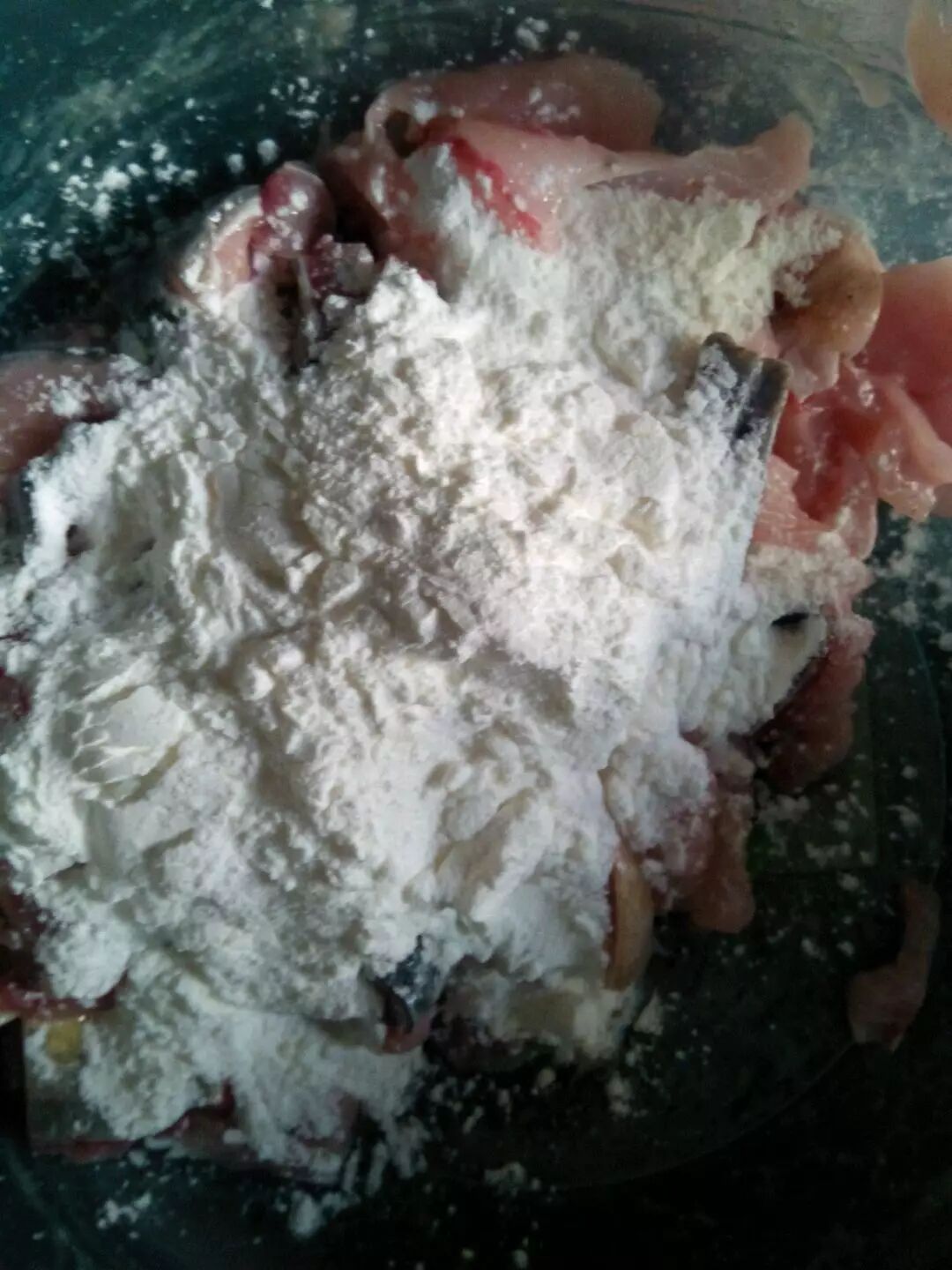 3、鱼内加料酒,盐,胡椒粉,腌制片刻后,加淀粉,拌匀备用!