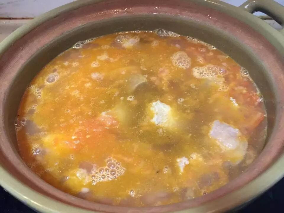 3、最后加入大块西红柿环节,也可以加入几个土豆块,味道更佳,因为土豆含有淀粉,汤会更粘稠。