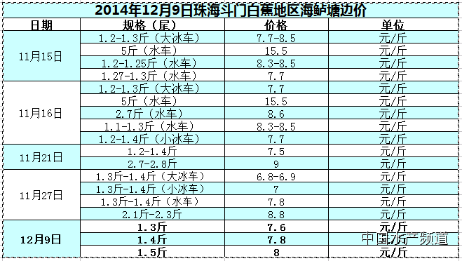 (以上数据由中国水产频道自主采集,价格及观点仅供参考。)