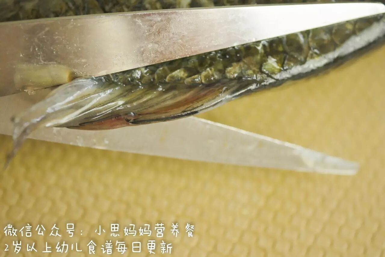 3. 将鱼头和鱼尾切掉,用水把鱼冲洗干净。