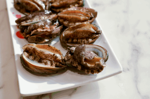 这儿的鲍鱼个头可真大,16头的,蠕动起来好可爱,非常新鲜~老板,先给我上一大盘!
