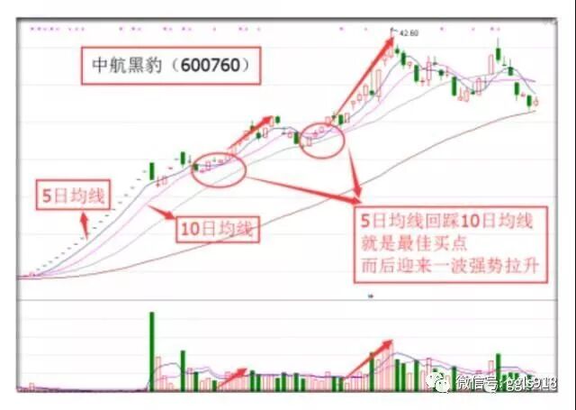 强势股基本都会沿5日线不断拉升,回调也很难跌出10日线。如果一只强势股回调至5日线或10日线上,往往会在随后的一两天快速复位。如果股价波动混乱,则该股很难成为强势股。