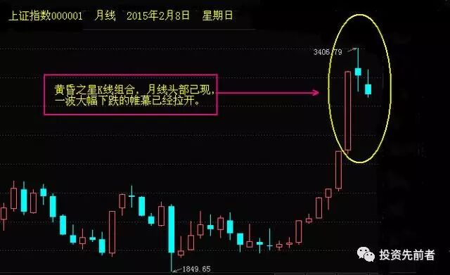 技术含义:此K线组合出现表明股价已经见顶或离顶部不远,股价将由强转弱,一轮跌势将不可避免。