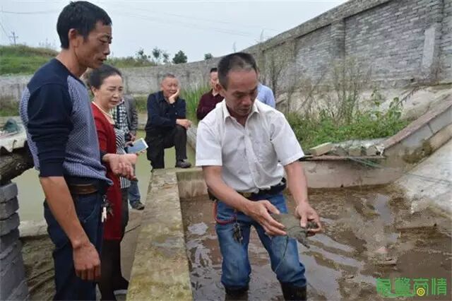“说起养甲鱼,那也是一次偶然,2012年我在成都一家苗圃公司购买种苗,看到当地有人养生态甲鱼,于是我就想,我们塘湾村的环境这么好,我何不来试一试。”罗贵云说,“当时我就去向当地养甲鱼的人打听,他们说愿意为我提供种鱼和技术。回到家,我立即再流转了几百亩土地,整起了生态甲鱼养殖基地。要说这养甲鱼也没想象的那么容易,首先是投入,这三年时间我建基地、买种鱼,花了600—700万。然后,重要的是技术,为了把甲鱼养成功,我一边电话给人讨经验,一边在书上自学,每天天不亮,甚至通宵观察甲鱼的生长习性!”