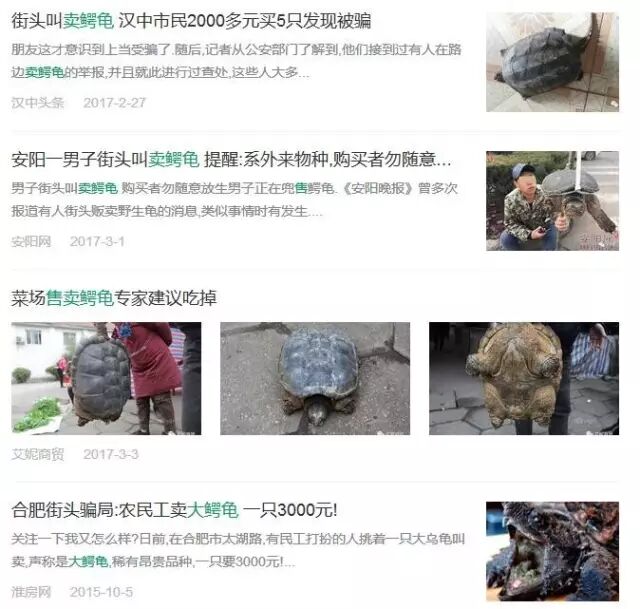 小编网上查询发现,类似的骗局在其它地方也曾出现,大部分的情况基本都是有人装扮成农民模样,拿鳄龟充当野味高价售卖,说是工地里挖出来的或这自己抓来的,说什么是千年的龟要价几百上千,市民朋友千万不要上当了。