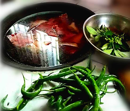 在锅中倒入泉水+盐+鱼慢慢熬成的原汁
