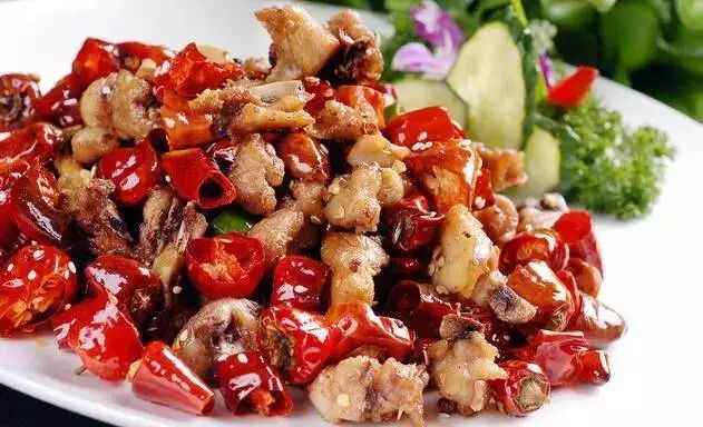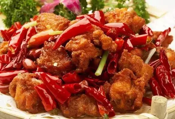 与传统的辣子鸡相比较,其香味更浓,鸡肉酥香,颜色红亮。