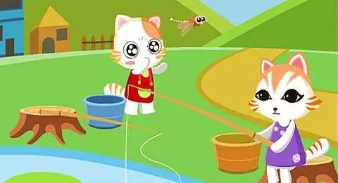猫妈妈有两个孩子,大的叫喵喵,是姐姐,小的叫咪咪,是弟弟,这天早晨,天气很好,花儿的香味一阵阵飘进屋里来,猫妈妈说:我们到小河边去钓鱼吧,你们快把钓鱼杆拿来,他们就扛起一根根鱼竿,向小河边走去。