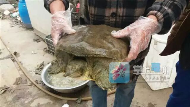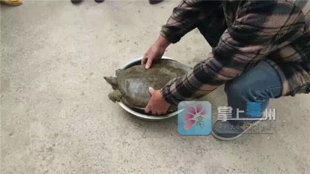蒙城县城关街道办事处河西社区的渔民慕魁在涡河上捕鱼时,捉到了一只野生甲鱼。看这个头,你能猜到有多重吗?