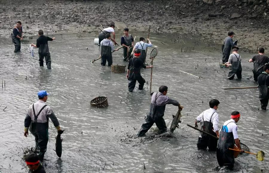 干塘时,还有个说法,叫做“蹭塘儿”,人们在干塘时过来掏点剩鱼,一般不会空手而归,运气好的能掏到野生甲鱼、黑鱼。干塘时除留下第二年的种鱼、卖掉多余的鱼后,剩下的鱼还会现杀现烧,做成“鱼汤饭”。