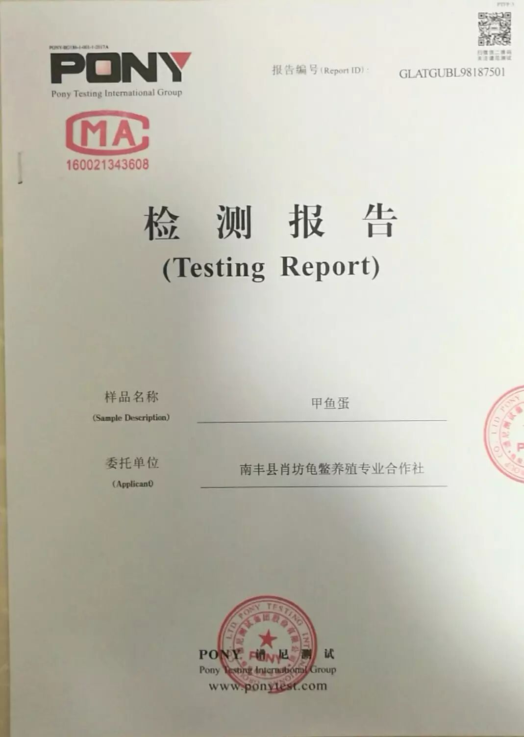 随着进来国内和国外越来越多的客户,开始了解和懂得甲鱼蛋的营养价值,所以罗建国养殖的甲鱼和甲鱼蛋,全部通过国内食品安全检测权威检测-PONY质量检测,可以放心食用。