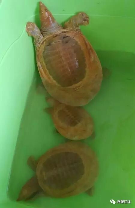 周尧介绍,他业余从事垂钓已有20多年了,此前也曾在村里周边水域钓起过不少甲鱼,但都是全身灰褐色的寻常品种。此次钓得这种背壳金黄、眼睛通红的黄金甲鱼,还是第一次。 周尧将这4只黄金甲鱼带回家中,养在一个塑料盆里。因为少见,附近村民闻讯纷纷跑来看稀奇。有人提议他拿到市场上卖个好价钱,也有人认为黄金甲鱼比一般甲鱼营养价值更高,劝他干脆弄着吃掉。