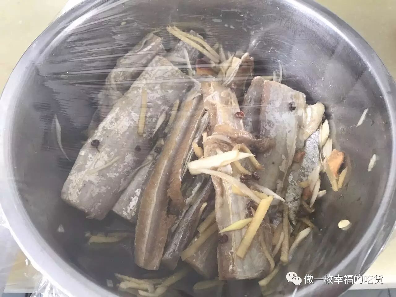 带鱼或超市卖的带鱼段都可以!提前准备好葱丝、姜丝、花椒粒、海鲜酱油、料酒、盐、淀粉等配料,马上开工~先将带鱼的内脏清洗干净,顺便用剪刀剪去背鳍! 将洗净的带鱼放入一个容器,接着放入一小撮花椒粒、葱丝、姜丝、海鲜酱油、料酒、盐,搅拌均匀,入味需要30分钟至1小时!一定要耐心等待哦!