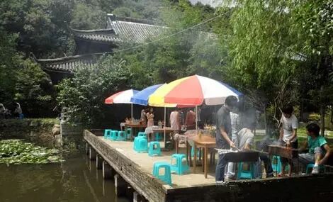 餐厅在森林公园里,可以骑骑自行车。不需要门票。炉具100元,包括(调料费、煤炭、竹签等)。食物可自带,也可使用店家的人均100元。