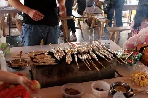 在竹林间烧烤气氛确实很不一样,但是林中蚊虫比平时更多,也可以选择在农家天台烧烤。走几步到竹林外,就是一片茶园。烤炉100元/个,提供食材另算费用,但食材种类不算多。