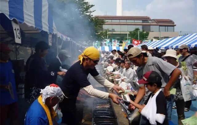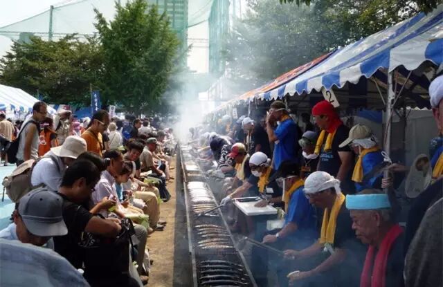 每年都会有秋刀鱼产地把肥美又新鲜的秋刀鱼免费送给目黑区,举办“秋刀鱼祭”。目黑田道广场公园,是举办“秋刀鱼祭”的传统地点,游人远远就可以闻到了烤鱼的焦香。一到祭典的时候,田道广场四周就会弯弯曲曲排起一条看不到头的长龙,场面真是壮观!
