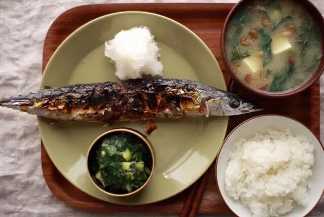 秋刀鱼的食法中,最平民的也是有名的,就是不去内脏,涂上盐,在炭火上烘烤,这样油脂渗出,鱼肉散发浓郁香味,而内脏又略带清苦味道,吃时佐以萝卜泥,也有不少地方爱用酸橘柚子柠檬汁之类。