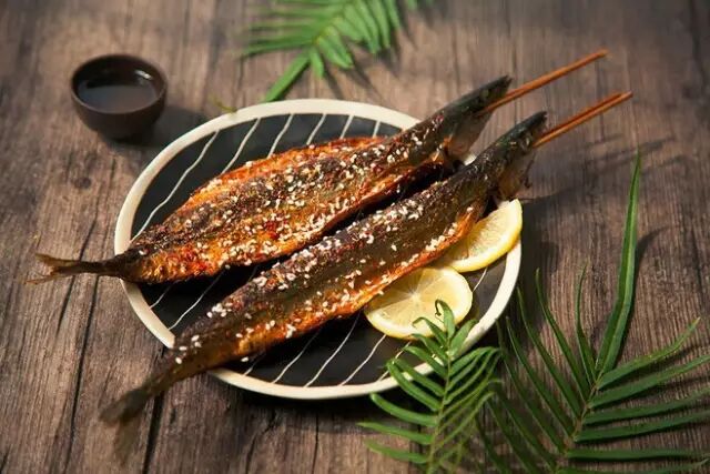 秋刀鱼本身又富含不饱和的脂肪酸,蛋白质和铁质,对心脑血管有益,因此还有“秋刀鱼出,不用按摩”这一俗语。