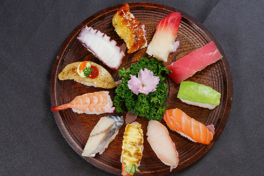 江户前寿司店以日本传统寿司流派命名,店里的处处细节都能窥见老板对于品质的追求,为了营造纯正的日式料理店风格,华丽的和服、武士铠甲等装饰品都是老板从美国、日本等地淘来的。不过吃日本料理,环境始终都是其次,烹饪和材料才是最紧要的。江户前寿司的米用的是世界顶级优质水稻品种——日本越光米,经过精心的碾磨,米粒颗颗大小均匀,晶莹剔透,口感别有一番清香鲜甜;深海鲜鱼则是每日从日本空运过来,品类繁多,甚至有在杭州难得吃到的蓝鳍金枪鱼;连蒜味芥末、抹茶香盐等调味料都是老板亲自从国外带回来的