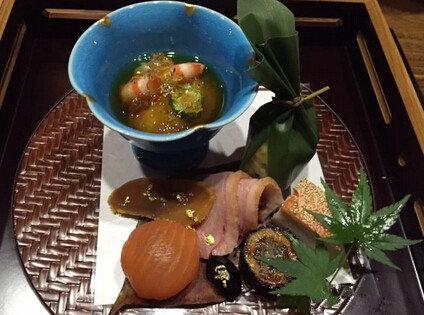 曼殊怀石料理,隐在杭州一条叫做八盘岭路旁的绿荫深处,怀石料理即便在日本,也是绝对高大上的形式。这家曼殊,花年薪40万请来一位“位高权重”的日本师傅,亲自打理。必须得提前1天预定,因为食材的准备不是一朝一夕能完成的。山药素面、蟹肉、三文鱼裹甲鱼蛋、鳗鱼卷牛蒡、缁鱼籽 、鸭胸肉、鳟鱼寿司、甜黑豆。每一样都精致到不忍下筷,每一样的味道都不尽相同,百转千回。