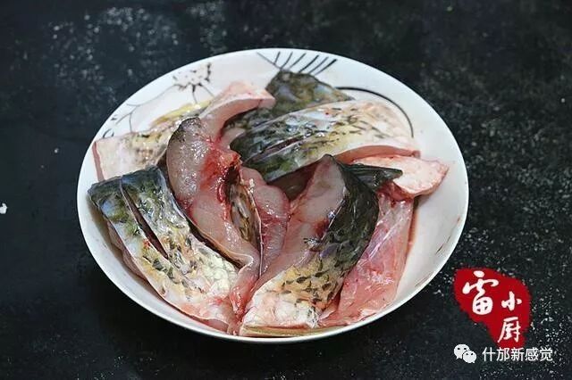 1、草鱼肉洗干净,剁成大块,倒入料酒 ,撒点盐抓匀腌10分钟。